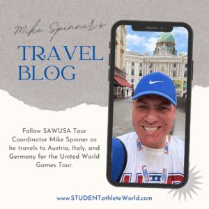 SAWUSA’s Tour Coordinator Mike Spinner takes you behind the scenes as he spends 10 days in Europe with the United World Games Tour.