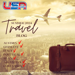 Today is last day of travel for 2024. We worked all year for just 39 days of travel! It was worth it, it was a truly great summer. I haven’t blogged in a while because I went myself to crash the Costa Rica tour for a few days with my 9 year old daughter. It was epic. The excursions we got to do (Waterfall, Zip-Line and Volcanic Hot Springs) were some of the best group excursions I’ve ever done. We also had a trip in Portugal this week, for the Euro Women’s Lacrosse Championships. They returned to the USA yesterday after an awesome time in Europe. It’s bittersweet to end this blog. It’s been so fun following our fourteen teams this summer They played 94 International matches against 22 counties. They visited 7 countries and made memories to last a lifetime. But… we can’t wait for 2025! Let’s do it all again – this time even bigger and better. Who is coming along?